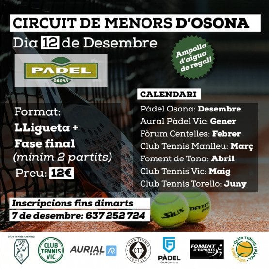 Set clubs d’Osona impulsen un Circuit de menors de pàdel
