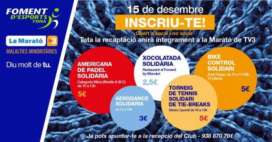 El Foment d’Esports organitza, el diumenge 15 de desembre, activitats solidàries per a la Marató de TV3.